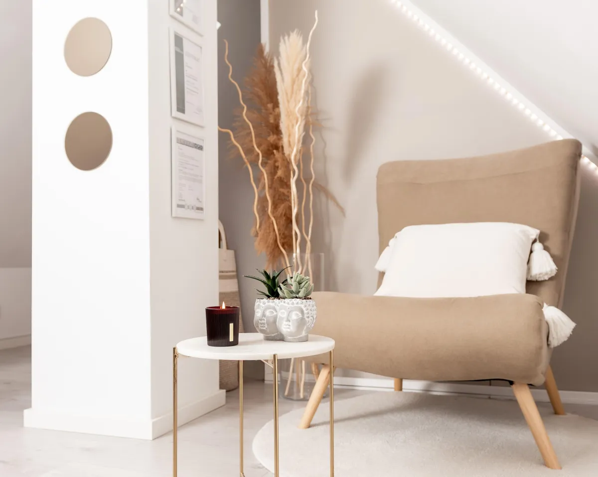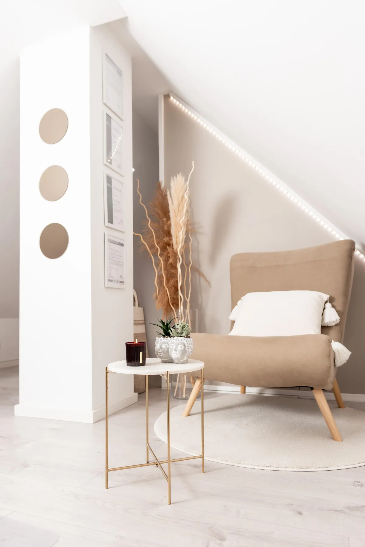 Im liebevoll ausgebauten Dachgeschoss einer Wohnung vereinen sich moderne Technologie, höchste Hygienestandards und ein ästhetisches Ambiente, das genau die Werte widerspiegelt, die auch unsere Arbeit auszeichnen: Professionalität, Natürlichkeit und eine klare, reduzierte Schönheit.